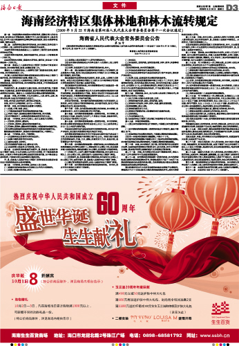 | 海南日报 文 件 027 2009-09-301 2009年09月30日 星期三 |