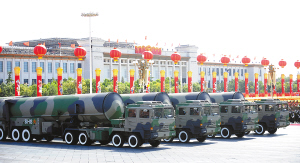 | 这是核导弹方队接受检阅。 新华社记者 李尕 摄 |