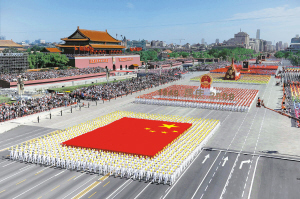 | 这是“国旗”方阵、“国徽”和“国庆、年号”方阵通过天安门广场。 新华社记者 杨磊 摄 |