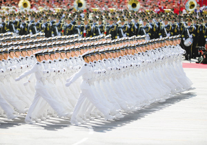 | 这是国庆阅兵分列式中的海军学员方队正在通过天安门广场。 新华社记者 陈晓伟 摄 |