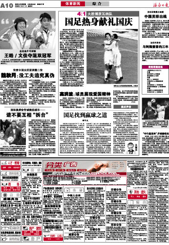 海南日报 体育新闻 010 2009-10-011 2009年10月01日 星期四