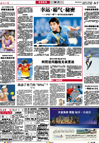 海南日报 体育新闻 007 2009-10-031 2009年10月03日 星期六