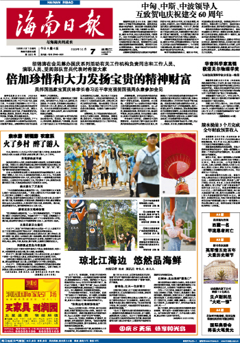 海南日报 头版 001 2009-10-071 2009年10月07日 星期三
