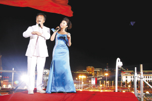 10月1日晚,精彩绝伦的首都国庆联欢晚会在天安门广场隆重上演。成龙、刘媛媛站在人民大会堂顶层(上图),以一曲高亢新歌《国家》压轴献唱,将晚会推向高潮。 导演组特意将成龙和刘媛媛合唱《国家》的舞台设置在人民大会堂顶层,既史无前例也匠心独具。见惯大场面的成龙激动地说:“我就是祖国母亲的一个孩子,在家唱歌感觉真好!”刘媛媛则表示,“看到天安门广场上万名群众的开心笑脸与热烈欢呼,我禁不住高兴地哭了!这就是我伟大的祖国!我感到无比自豪!” (姜微)