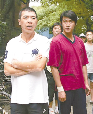| 冯小刚(左)在片场,右为演员陆毅 |