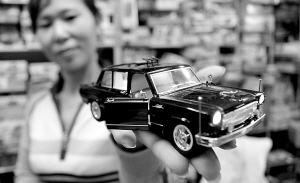 国庆60周年盛大阅兵式引发了“军事热”,各种军事装备模型受到顾客青睐。天津商家展示最新到货的阅兵式检阅车的模型。