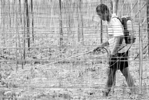 我省大力推广“稻—稻—菜”轮作制度,十月九日,在海口市灵山镇,一村民收割晚造稻谷后又在田地上种植反季节瓜菜,充分利用冬闲农田扩大瓜菜种植面积。 本报记者 李英挺 摄