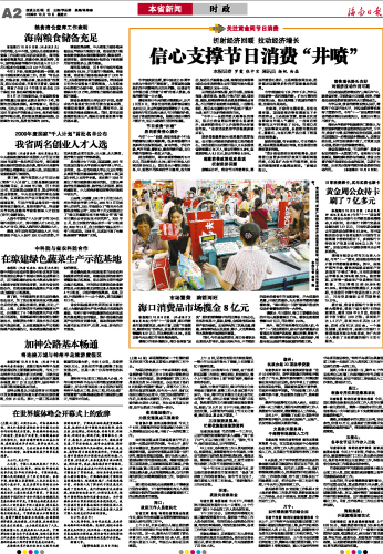 海南日报 本省新闻 002 2009-10-101 2009年10月10日 星期六