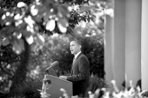 | 10月9日,美国总统奥巴马在白宫玫瑰园发表讲话。 新华社记者 张岩 摄 |