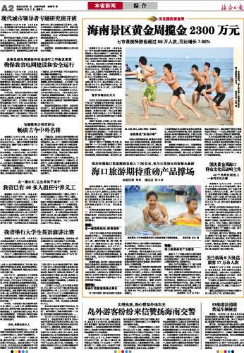 海南日报 本省新闻 综 合 002 2009-10-111 2009年10月11日 星期日