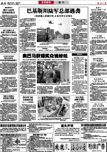 海南日报 世界新闻 综 合 004 2009-10-111 2009年10月11日 星期日
