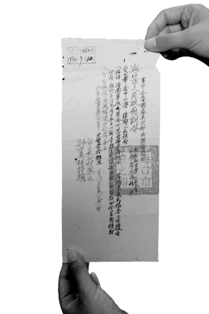 | 藏友收藏的一九五○年代的海口市人民政府训令。 |