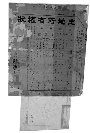 何先生首先向记者展示了一张民国三十一年的老地契,这是一张由“海南特区行政长官公署”签发的土地所有权状。
