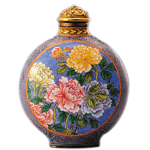 | ←雍正文物展中的画珐琅牡丹荷莲鼻烟壶。资料图片 |
