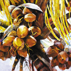 也正因此,要在这来路众多、性格各异、风格多样的艺术家身上寻找共同规律,难上加难。好在画展的主办者定下了《海南·故乡的太阳》这样的基调,赴展的艺术家也大多以描绘海南地域特色为主。无独有偶,有论者指出,海南新的美术运动的一个重要标志,就是刻画表现海南地域特色。其实这也并非偶然巧合,正像法国南部的景色吸引了塞尚、凡高,南太平洋岛国塔希提的风景吸引了高更,这三人联袂开创了后印象派绘画一样,海南岛的热带亚热带独特景色及其岛屿海洋文明,在新世纪的中国也格外具有吸引力,其对天性敏感、个性强烈的艺术家的吸引力更堪称致命,无论本岛还是旅琼艺术家,围绕海南地域特色大作文章、争奇斗艳,正是题中应有之义。
