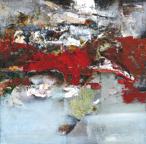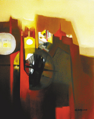 连年届八旬的陈显栋老人也被这浓郁乡情打动,在其《家园之一》、《家园之二》中分别有两种主色调,一种是太阳的红色、橙色、黄色,一种是海洋或雨林的蓝色、绿色,不知我解读得对不对,抽象画本来就是“仁者见仁,智者见智”的,但抽象画家无论是展智者之思,还是抒诗人之情,共同的人性是理解其艺术创作的基础,就这点而言,陈显栋将对海南故乡的思恋用抽象构成的方式展现出来,人们在欣赏其视觉之美、色彩之绚丽之时,也可触摸到他作为游子的内心最柔软的那个部分。