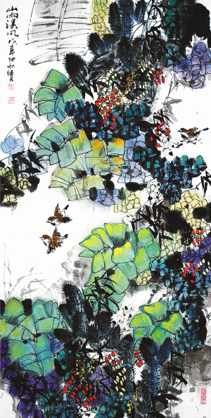 更何况还有艺术风格的多样性!展出的62幅作品中,有36幅油画,26幅国画。油画作品中,主要为写实类作品,但以陈显栋、李东东、蔡蔚、马杰、陆运章为代表的抽象风格画作也占据了不小的篇幅,且具有很强的视觉冲击力;即便同为写实类作品,既有刘贵宾、谢耀庭、王建顺、李生琦、周铁利、梁峰这样功力深厚的具象派,也有王家儒、周国富、牧之这样率性涂抹的“印象派”。国画作品同样如此,既有裘缉木独创一格的“没骨画”,也有李涵、郭显中的大写意花鸟,还有张少山、乔德龙、齐英石的水墨人物画,曾祥熙、蔡於良、符史雄等为代表的南派山水,罗继贞、卢向玲、方宝价等的南派花鸟画。