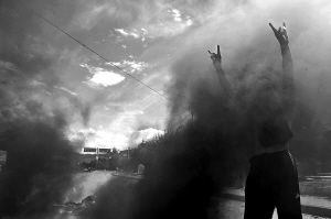 | 在洪都拉斯首都特古西加尔巴,洪都拉斯被罢免总统塞拉亚的支持者在一场集会中设置路障、焚烧轮胎。 新华社/法新 |