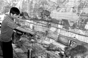 | 9月24日,那大镇侨南村村民邵向辉在喂兔子。夫妻俩以种植橡胶为主业,饲养250头生猪、30只兔子等为副业,仅副业年收入就近6万元。 本报记者 苏晓杰 摄 |