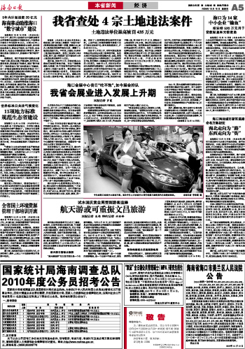 海南日报 本省新闻 005 2009-10-151 2009年10月15日 星期四