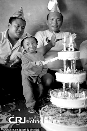 卡根德拉的家乡位于尼泊尔首都加德满都以西约180公里的巴格隆县一个边远山村。14日一家人热闹地为他举行了生日庆典。还不及桌面高的卡根德拉伸出小手,在爸爸的帮助下,点燃了五颜六色的生日蜡烛,微笑荡漾在每个人脸上。