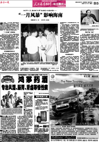 “其实《海南日报》在海南是最早被夺权的,早在1967年1月14日就被红卫兵与海南印刷厂的造反派联合夺权,后改名《新华电讯》。”今年75岁的林道群,曾任省委政策研究室副主任,当时是区委党校的教员。林道群回忆说,1966年10月底,各地“文化大革命”运动轰轰烈烈展开,他因为在“四清运动”中成绩突出,又是教员出身,被选为党群战线文革委员会主任,负责区组织部、办公厅、共青团、党校、纪监委等部门的“文革”运动。