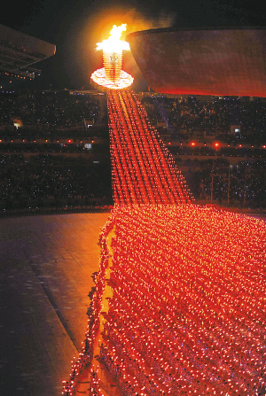 5千人 共同点火 在开幕式上被点燃的主火炬。 新华社发