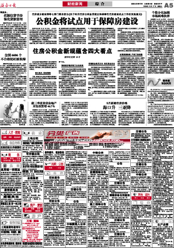 海南日报 财经新闻 005 2009-10-171 2009年10月17日 星期六