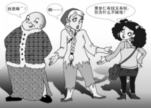 “黄世仁”和“白毛女”不仅代表着富有和贫困两个不同的阶级,还富有正义与邪恶对立的意味。也就是说,“白毛女”的权利被压榨和“黄世仁”的为富不仁以及权利侵犯形成了泾渭分明的反差———某种意义上说,前者不能放弃公平正义的诉求,注定与后者永不妥协,抗争到底。就算是有个别“白毛女”被“招安”,也不意味着可以放弃对公平正义的追求和信仰。