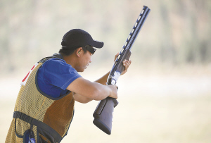 18日,辽宁队选手孙崇伦在男子飞碟多向决赛中以136中的成绩夺得冠军。