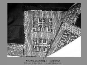 黎族棉纺织业按照不同的方言,在应用工艺上各有侧重。其中,杞、赛方言以彩纬彩经显花编织为主,用绣较少;润方言则以绣为主,其双面绣技艺高超;哈方言则织绣双全;而美孚方言最突出的工艺是絣染。
