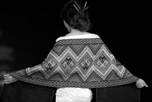 | 传统的黎族织锦技艺经过改良,逐步进入了市场。图为参加环球旅游小姐比赛的选手身披黎锦产品走秀。