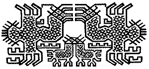 在黎族各方言支系的黎锦图案中,包括一些年老妇女的文身图案里,基本上都有人形纹,最具有视觉冲击力的要数润方言的一个。该图案的人形十分高大和魁梧,尤其是双臂和双腿非常健硕,在其胸前和下方各有一个较小的人形纹。有人将这一人形纹称为“大力神纹”或“祖先纹”,倒也真切地反映出了黎族人也有类似于汉族的“敬天法祖”的思想倾向,在他们心灵深处,应该是敬畏上苍,敬畏造物主的。