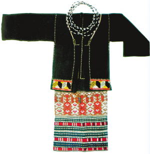居住在保亭、陵水和三亚交界处的赛方言支系,其黎锦艳丽的程度与杞方言支系并不相上下,而且赛支系的女子似乎格外爱美,为了制造黎锦在阳光下亮闪闪的效果,不知道从何年月开始,她们在筒裙的下方绣上了云母片,也算是一大创意吧。