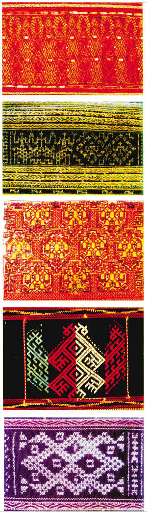 那么,周去非笔下的五种颜色分别是什么呢?这位古人没有言明,但今人通过调查和研究,发现黑、蓝、红、黄、白是黎锦织造过程中用得最多的颜色,当然,也辅以绿、棕、粉等颜色的线条和纹样。