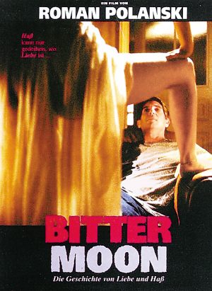 在这部尺度惊人的情色电影中,充满了变态、性虐待、偷窥等邪恶元素,主演阵容中不仅包括休格兰特等文艺片明星,还包括1989年成为波兰斯基第三任妻子的性感明星艾玛纽尔·塞尼耶。《苦月亮》的故事有两层,一层是在旅途上相识的一对英国夫妇和一对美国夫妇之间混乱的情欲关系,另一层是由美国丈夫讲述的他与妻子之间的藉由相互虐待和伤害来维系的病态的情爱关系,这两层故事的最后交融导致了悲剧的发生。影片彻底揭下了世俗婚姻温情脉脉的面纱,以一种决绝的姿态揭示了婚姻的本质不过是一场相互的折磨,这样惊世骇俗的主题即使是在思维活跃的西方也被很多人认为是无比邪恶的,但这种阴冷彻骨的思想的质感也正是波兰斯基电影存在的价值。