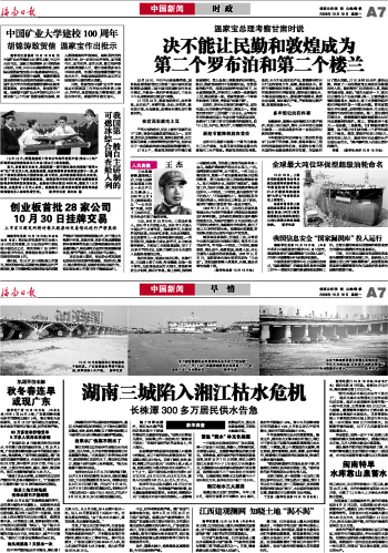 | 海南日报 中国新闻时 政 007 2009-10-191 2009年10月19日 星期一 |