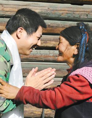 一口广东腔,一头“板寸”,一脸白净皮肤,这个南方人看上去与雪域高原那么不搭调。可当他走进察隅河畔的偏僻村庄,藏族老阿妈就伸出粗黑的双手捧住他的脸:“我的孩子又回家了。”
