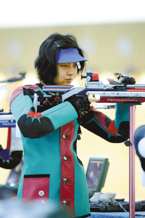 | 10月19日,在第十一届全运会射击比赛女子10米气步枪资格赛中,杜丽以398环的成绩排名第九,无缘决赛。 新华社发 |