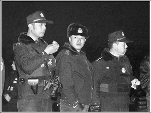 | ← 参与搜捕的民警以面包充饥。 |