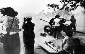 | “八姐妹炮班”的女民兵苦练杀敌本领。 伍振超 庞永祥 刘端阳摄 |