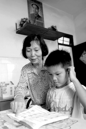 | 第一代“八姐妹炮班”瞄准手陈香兰在教孙子做家庭作业。 本报记者 苏建强 摄 |
