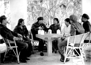 | 许世友(左三)接见第一代“八姐妹炮班”。 本报记者 苏建强 翻拍