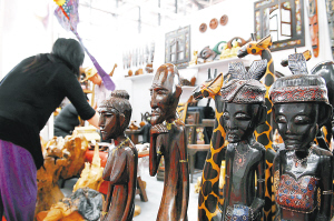 10月20日,参观者在印度尼西亚展馆内选购木制工艺品。当日,中国—东盟博览会在广西南宁市国际会展中心开幕,东盟国家参展的首饰、玩具、钟表等小商品引得观众驻足。 新华社记者 刘昀 摄