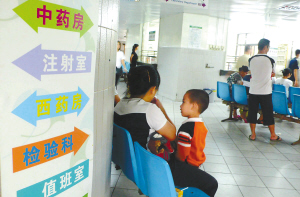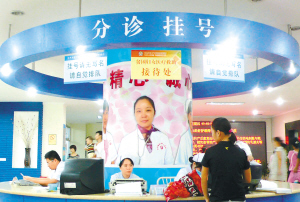 | ↑10月22日,在海口某医院里,分诊挂号处里没有国际通用的图案标识及英文标识。 |