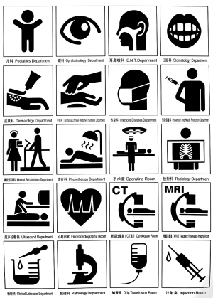 | →这是《标志用公共信息图形符号》上关于医疗保健的部分国际标准符号。