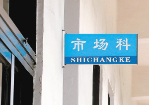 | ↑10月23日,海口市政府某局的市场科牌子,底下用的是拼音而不是英文。 |