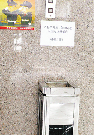| ↑10月23日,在海口市某政府机关里,垃圾桶上缺少标准的图案标识。 本栏照片均由本报记者张杰摄 |