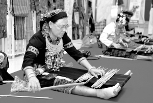 | 海南首届民俗工艺展上的黎锦技艺深受欢迎。