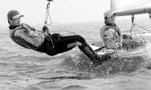 | 2005年,参加男子470级奥林匹克航线赛的海南队选手邓道坤/王伟东在比赛中。当日,十运会帆船倒数第二轮比赛在连云港进行,邓道坤/王伟东提前一轮获得该级别冠军。
